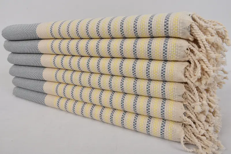 Personalized Turkish Bath Towel Gray Yellow Embroidered, 40x70 Inches