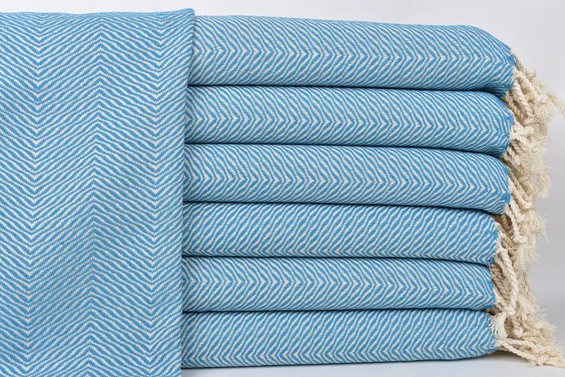Turkish Hand Towel Turquoise Chevron, 20x40 Inches, Beige