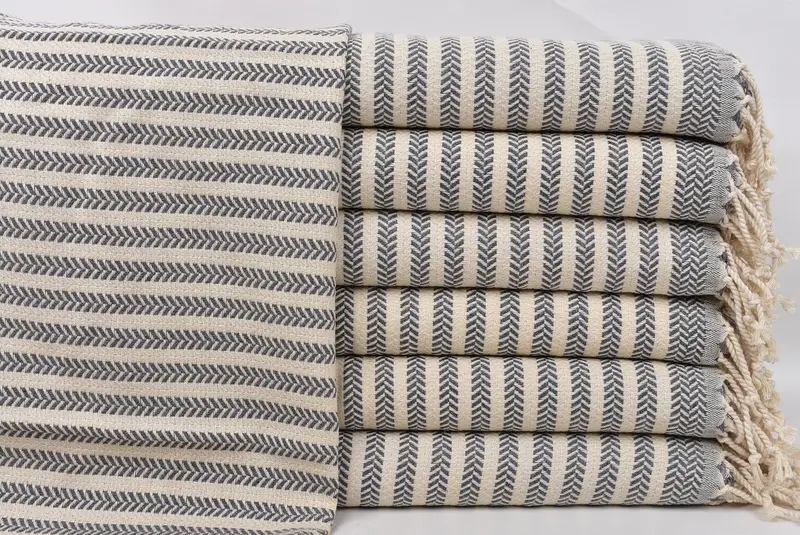 Personalized Turkish Tea Towel Dark Gray Chevron, Beige, 18x40 Inches