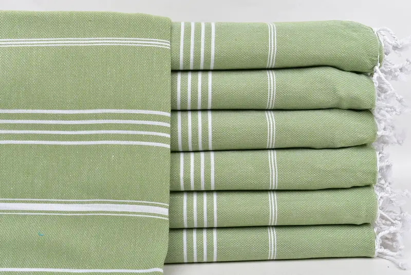 Beach Towel Monogrammed Turkish Cotton Khaki Green Stripes, 40x71 Inches