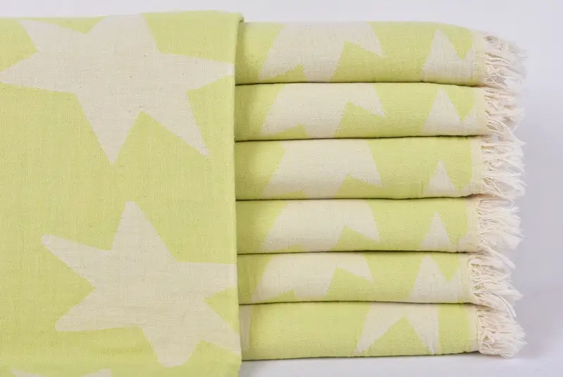 Star Patterned Turkish Bath Towel, Beige, 37x69 Inches