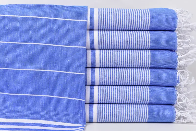 Hair Towel Sax Blue Organic Striped Towel, 24x40 Inches