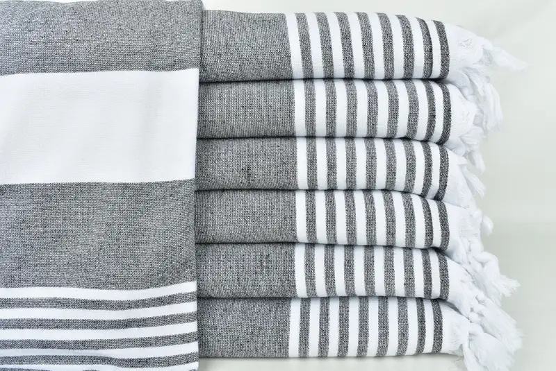 Turkish towels are made from premium Turkish cotton, ensuring exceptional absorbency and quick drying. Characterized by their superior quality, these towels measure 36x67 inches (90x170 cm) with a permissible variance of 1-2.5 cm. Each towel weighs around 400 grams, resulting in a lightweight yet durable product.