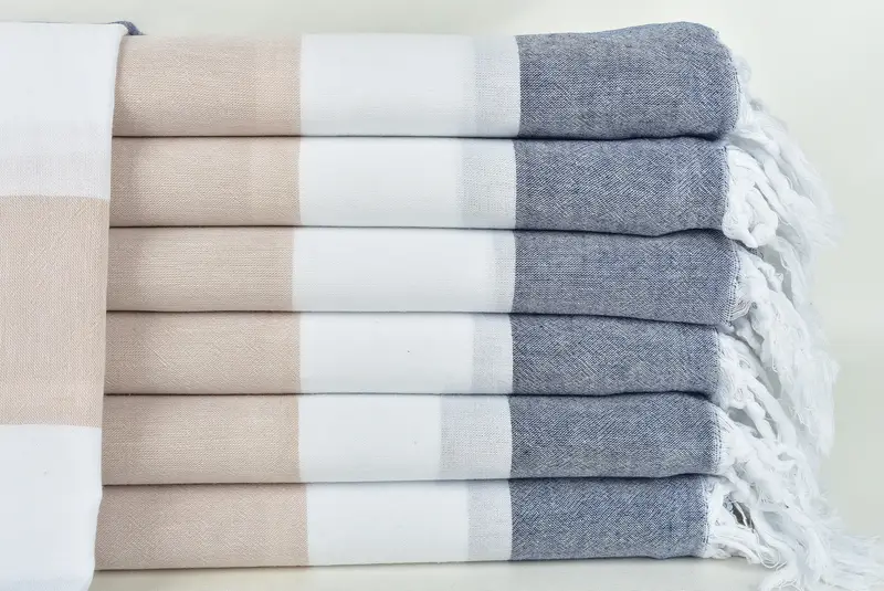 Turkish towels are woven from premium Turkish cotton, ensuring superior absorbency and quick drying characteristics. Measuring 40x71 inches or 100x180 cm with a tolerance of 1-2.5 cm, these towels weigh around 200 grams. Hand-woven on traditional looms, each piece may vary slightly in dimensions, resulting in a unique product.