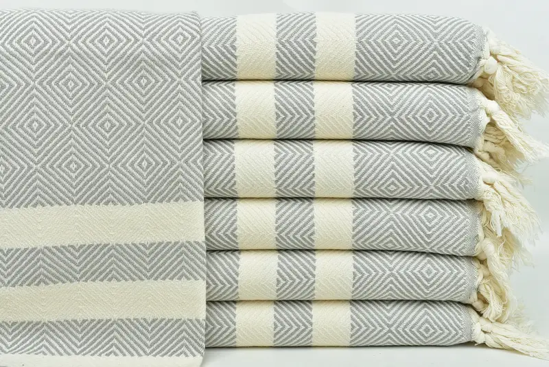 Turkish towels exhibit superior absorbency and quick drying times owing to their Premium Turkish Cotton composition, ensuring they remain effective and comfortable for prolonged use. Characterized by dimensions of 20x32 inches or 50x80 cm with a tolerance of ±1-2.5 cm, these towels weigh approximately 100 grams, providing a balance between lightweight portability and sufficient absorbency. Customization options include embroidery of names or dates, enhancing their appeal as gifts or personal keepsakes.