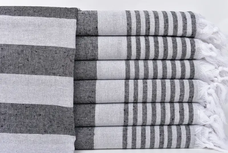 Premium Turkish cotton ensures superior absorbency, resulting in quick drying times. Characterized by the traditional hand-weaving process, the towels exhibit tolerances of 1-2.5 cm in dimensions. Dimensions stand at 36x67 inches or 90x170 cm, with a weight of approximately 200 grams.