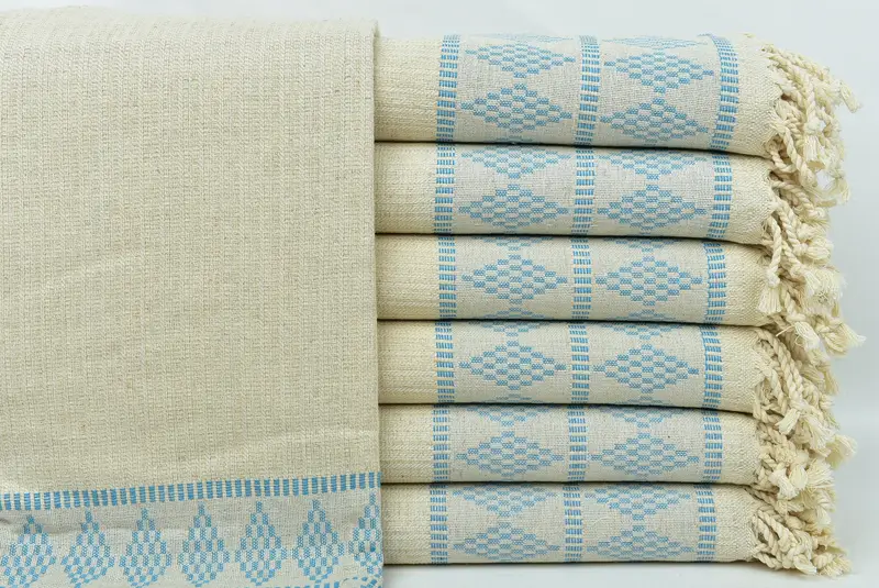 Turkish cotton, characterized by its remarkable absorbency and quick drying capabilities, makes these towels highly efficient. They are meticulously crafted from traditional hand looms, ensuring a 36x71 inches dimension, equivalent to 90x180 cm, with a slight tolerance of 1-2.5 cm. Each towel weighs around 480 grams, ensuring versatility for various uses.