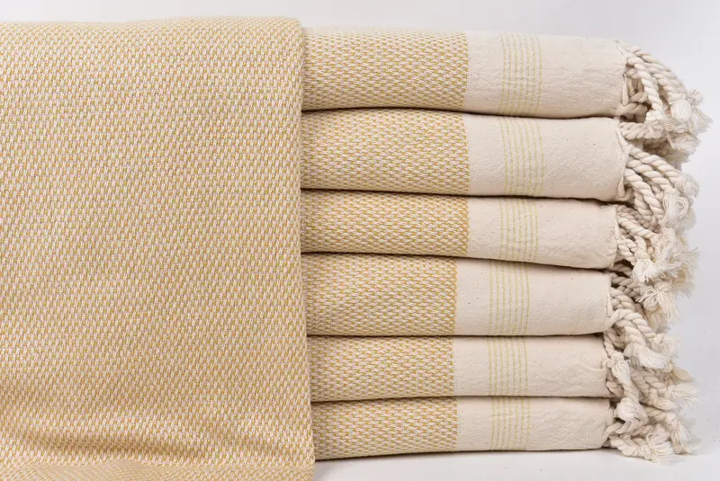 Personalized Mustard Striped Organic Beach Towel, 40x71 Inches
