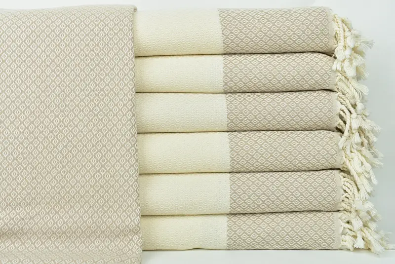 Embroidered Beach Towel Personalized Light Beige Diamond, 36x71 Inches