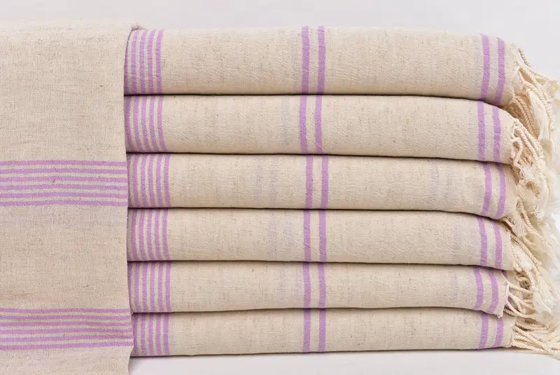 Turkish Bath Towel Embroidered Beach Towel Lilac Striped, 36x79 Inches