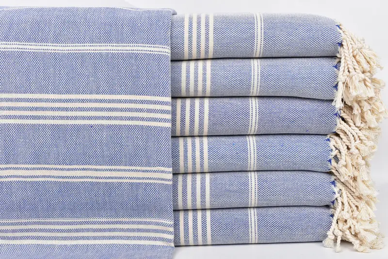 Personalized Turkish Bath Towel Sax Blue Striped, 40x71 Inches