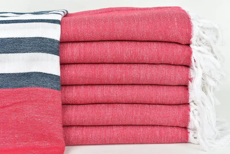 Embroidered Turkish Bath Towel, Red Striped, Personalized, 40x71 Inches