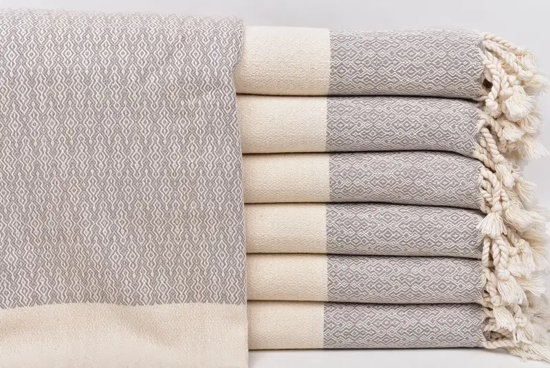 Personalized Turkish Beach Towel Light Gray Diamond Pattern, 36x67 Inches