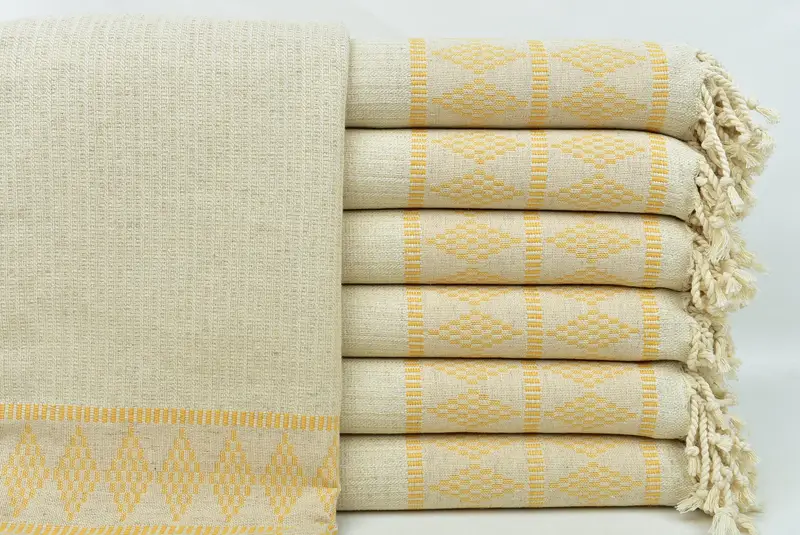 Turkish Towel Personalized Linen Mustard Kilim Design, 36x71 Inches