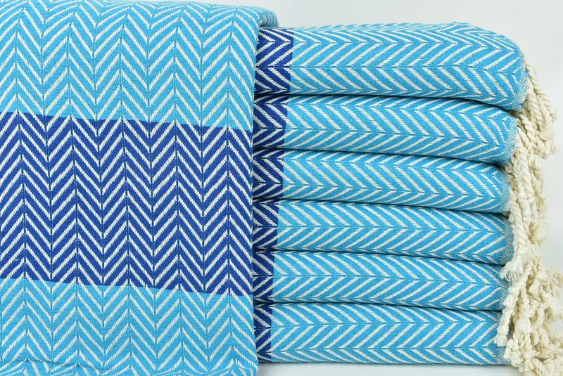 Personalized Chevron Towel Turquoise-Sax Blue, Organic Beach Towel, 40x71 Inches