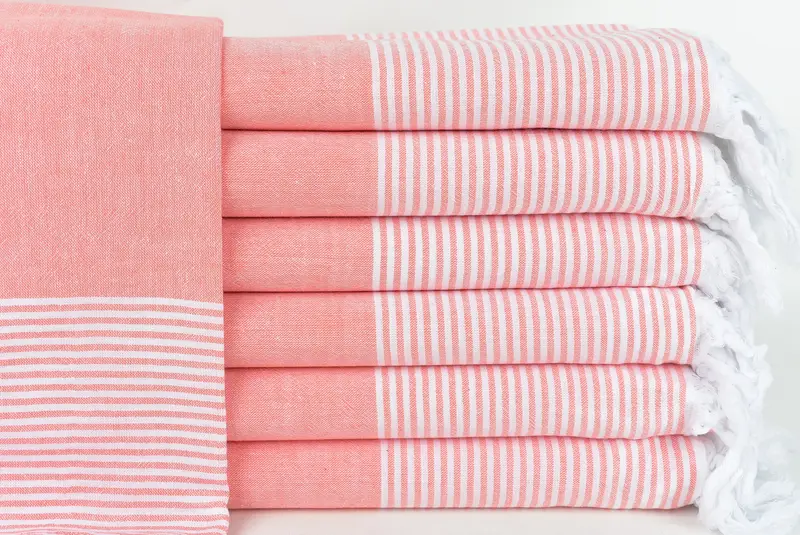 Turkish Beach Towel Coral Stripes, Personalized 36x79 Inches