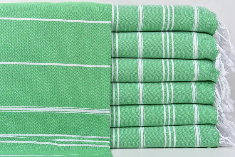Turkish Tea Towel, Small Benetton Green Striped Napkin, 24x40 Inches