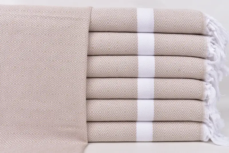 Cotton Woven Turkish Tea Towel Beige Diamond, 18x40 Inches