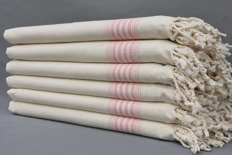 Turkish Hand Towel Organic Linen Beige Pink Stripes, 20x36
