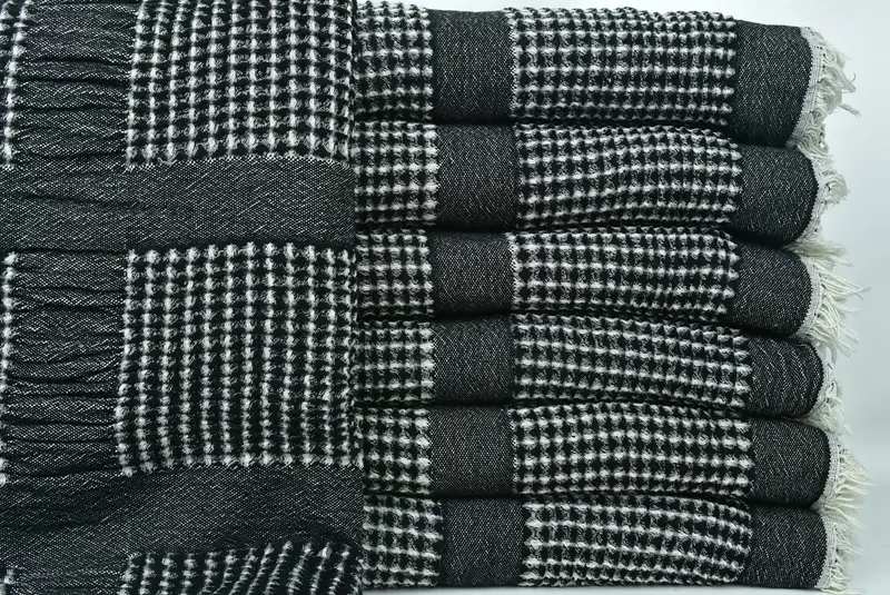 Bedcover Turkish Bedspread Black Throw Waffle Blanket, 79x83 Inches