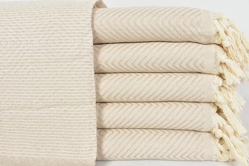 Beige Diamond Design Turkish Blanket, 78x94 Inches, Cotton, Coastal