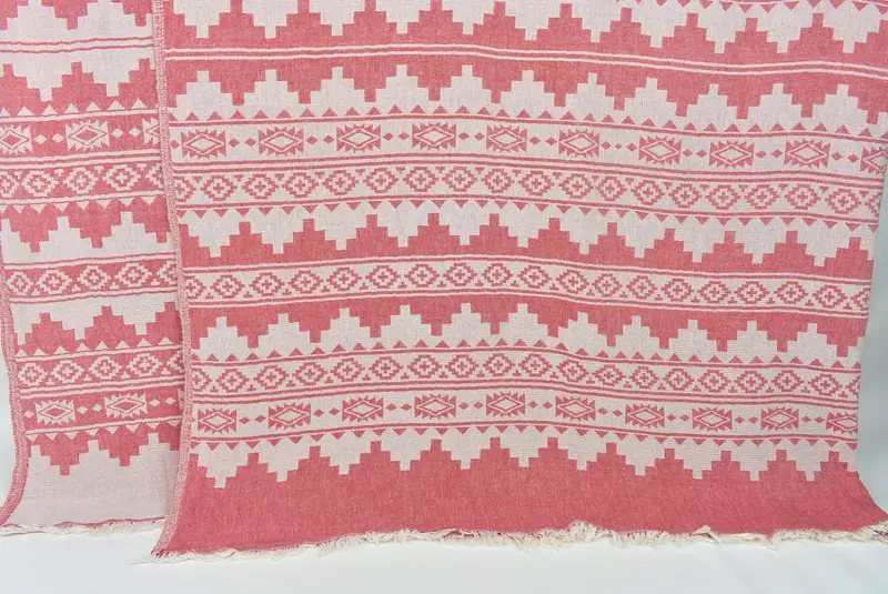 Turkish Bedspread Red Blanket, 79x91 Inches Cotton Throw Blanket