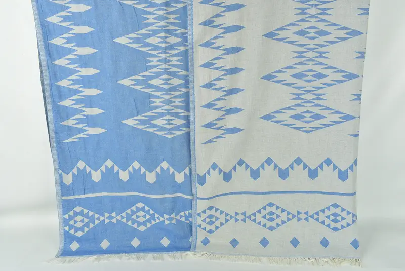 Bohemian Bedspread Geometric Sax Blue Blanket Bridesmaid Gift, 60x71 Inches