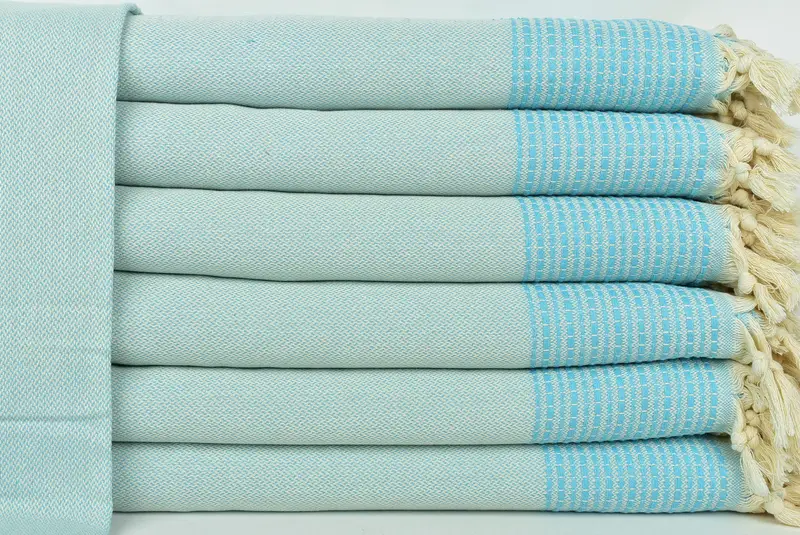 Turkish Bedcover Turquoise Throw Striped Blanket, 91x95 Inches