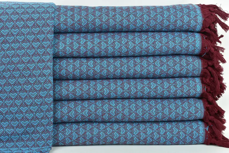 Dark Turquoise-Burgundy Heart Design Throw, 75x87 Inches