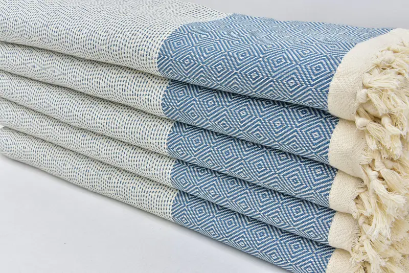 Multi-use Blue Turkish Cotton Geometric Blanket, 79x95 Inches