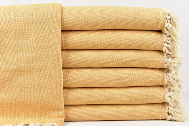 Turkish Throw Blanket Chevron Bedcover, Beige, 67x91 Inches