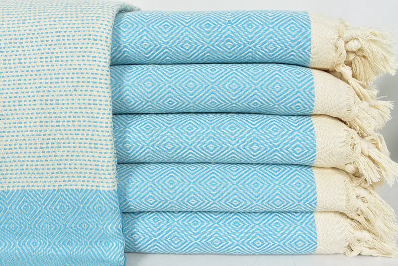Boho Throw Blanket Turkish Cotton Geometric Pattern Blue, 78x94 Inches