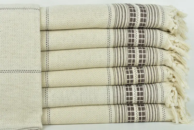 Bedcover Turkish Throw Blanket Brown Beige, 93x95 Inches Linen