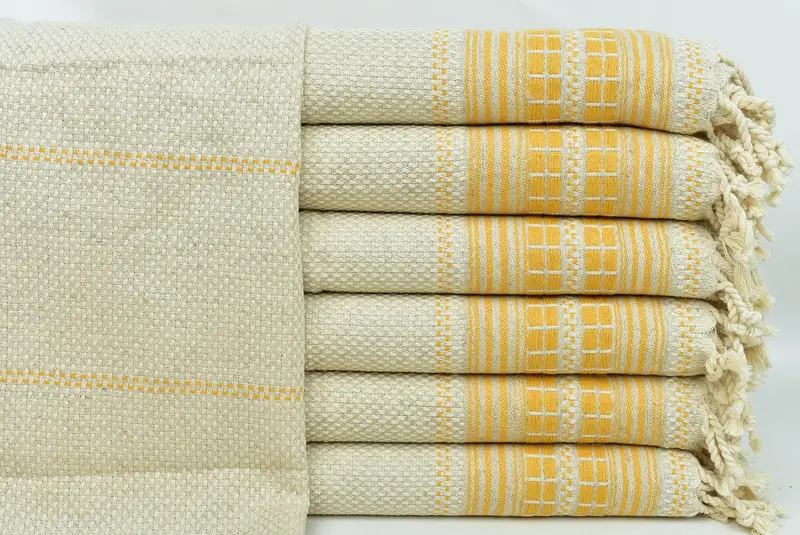 Embroidered Kitchen Towel Mustard Linen Hand Towel, 20x40 Inches
