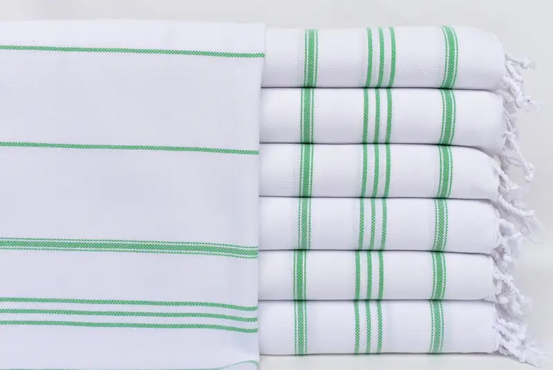Wedding Gift Personalized Green Striped Embroidered Kitchen Towel, 24x36 Inches
