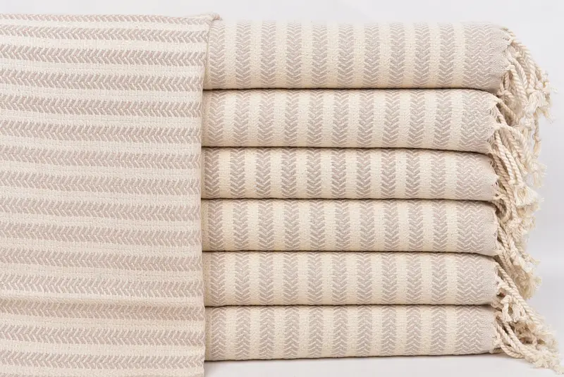 Hand Towel Personalized Turkish Cotton Beige Chevron, 18x40 Inches
