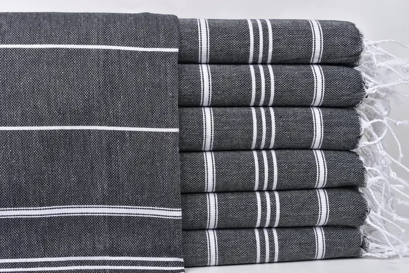 Kitchen Towel Black and Beige Stripes, Turkish Cotton, 24x40 Inches