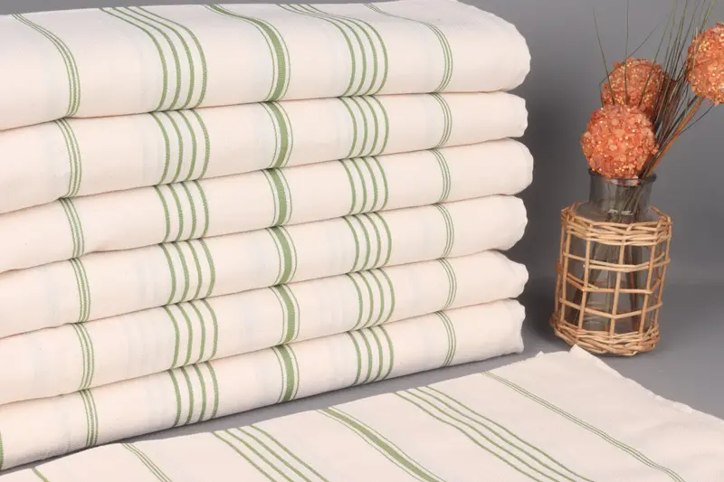 Turkish Towel Beach Green Striped Organic Cotton, Fringeless, 40x71 Inches