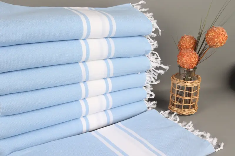 Personalized Blue Striped Bath Towel, Organic Cotton, 40x71 Inches