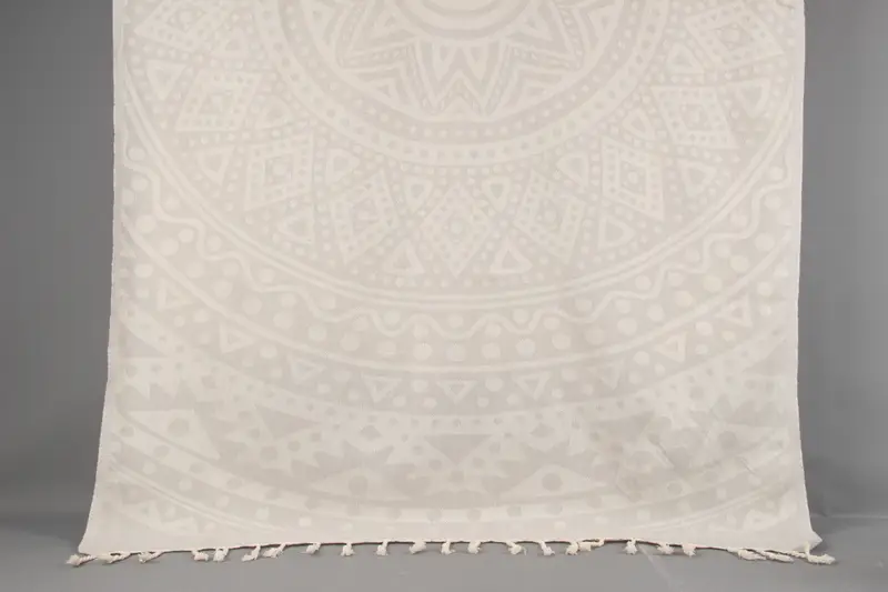 Personalized Turkish Beach Towel Gray Beige Round Design, 40x71 Inches