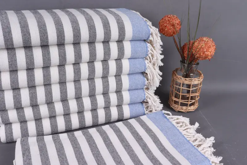 Wholesale Turkish Bath Towel, Sax Blue, Striped, 40x67 Inches