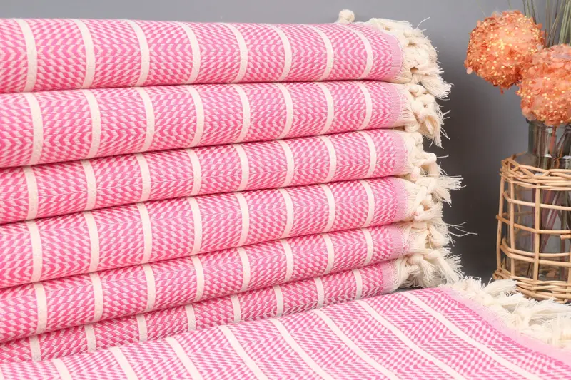 Custom Pink Striped Towel, Organic Cotton, 40x71 Inches