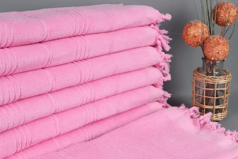 Turkish Towel Beach, Embroidered Pink Striped Terry Towel, 36x71 Inches
