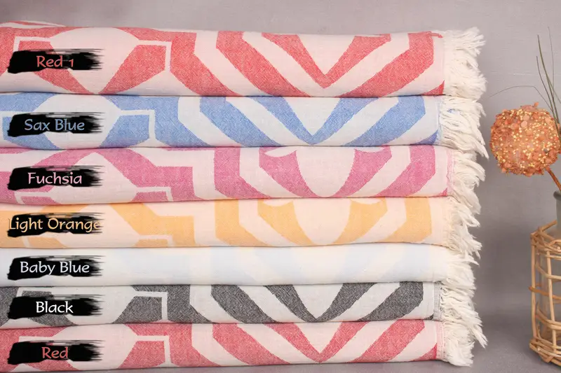 Monogram Beach Towel Tulip Pattern Organic Cotton, Beige, 36x67 Inches