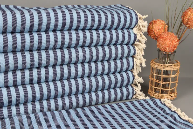 Turkish Bath Towel Blue-Navy Striped, Organic Cotton, 40x71 Inches