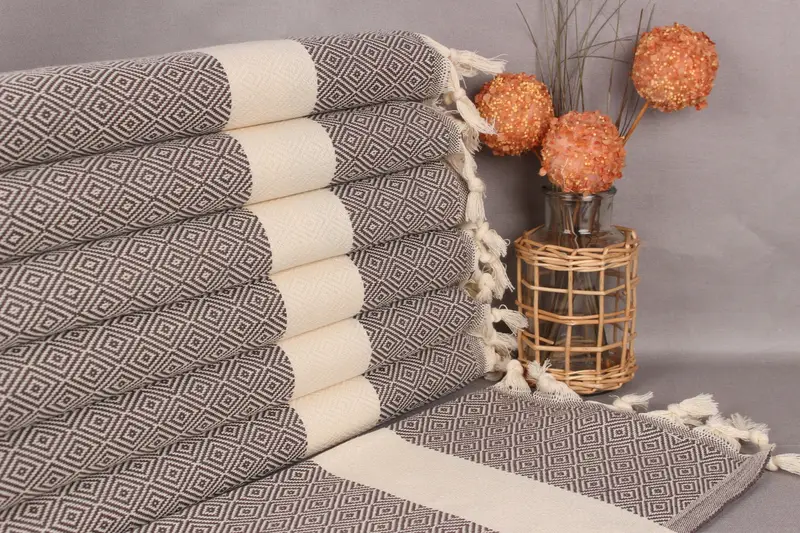 Turkish hand towels are characterized by their fiber composition, primarily consisting of organic cotton yarn. Ensuring exceptional absorbency and softness, these towels are gentle on the skin and durable. Fabricated with precision, each piece measures 20x36 inches or 50x90 centimeters, weighing approximately 115 grams, with a tolerance of up to 2.5 cm due to hand-weaving techniques.