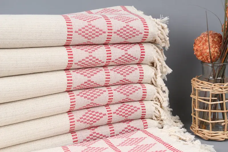Offering multi-purpose functionality, the towel can be used as a kitchen, bath, or travel towel. Pre-washed and hand-woven, it is ready for immediate use and becomes softer with each wash.