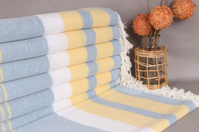 Constructed from organic cotton yarn, the Turkish towel ensures optimal absorbency and breathability. The dimensions are 40x71 inches (100x180 centimeters), with a weight of 250 grams. Hand-weaving may result in size variations up to 2 inches (5 centimeters).