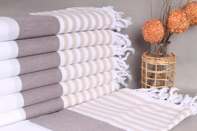 Turkish cotton towels, characterized by their hand-weaving techniques, offer superior absorbency and multi-purpose utility. Ensuring a soft and supple texture, these towels are crafted from organic cotton yarn, reinforcing their hypoallergenic properties. Resulting in a lightweight and compact design, each towel measures 40x71 inches with a weight of 280 grams, exhibiting slight variations due to the weaving process.