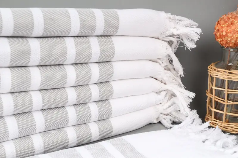Organic cotton yarn ensures high absorbency and quality. Resulting in, the Turkish towel measures 40x71 inches (100x180 centimeters) with a tolerance of up to 5cm in either dimension. Handwoven construction results in a towel weighing 380 grams.